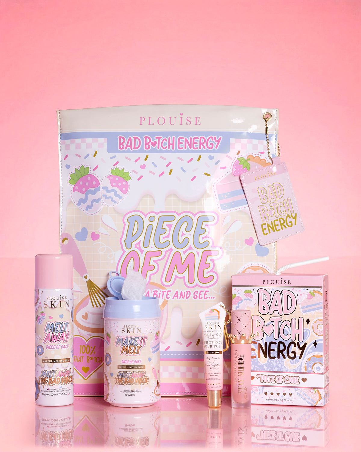 Spritz Schmelzender Nebel Auf die Haut auftragen, Make-up mit dem abwischen Make It Melt Tücher, dann beenden Sie mit dem Bad Bitch Energy Lippenduo für den ultimativen, hydratisierten Schmollmund.