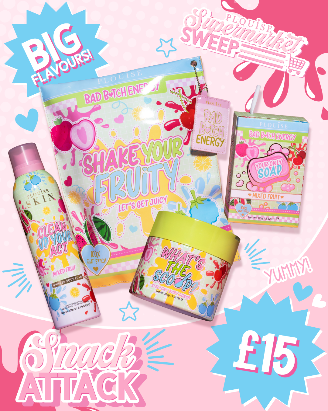 Aufschäumen mit Ihre einzige Seife, mit dem reinigen Aufgeschlagener Körperschaum, dann Peeling mit Was ist das Scoop Scrub? für ultraglatte Haut. Bewahren Sie Ihre Leckereien in Ihrem Jelly Bag auf, damit Sie immer zum Strahlen bereit sind.