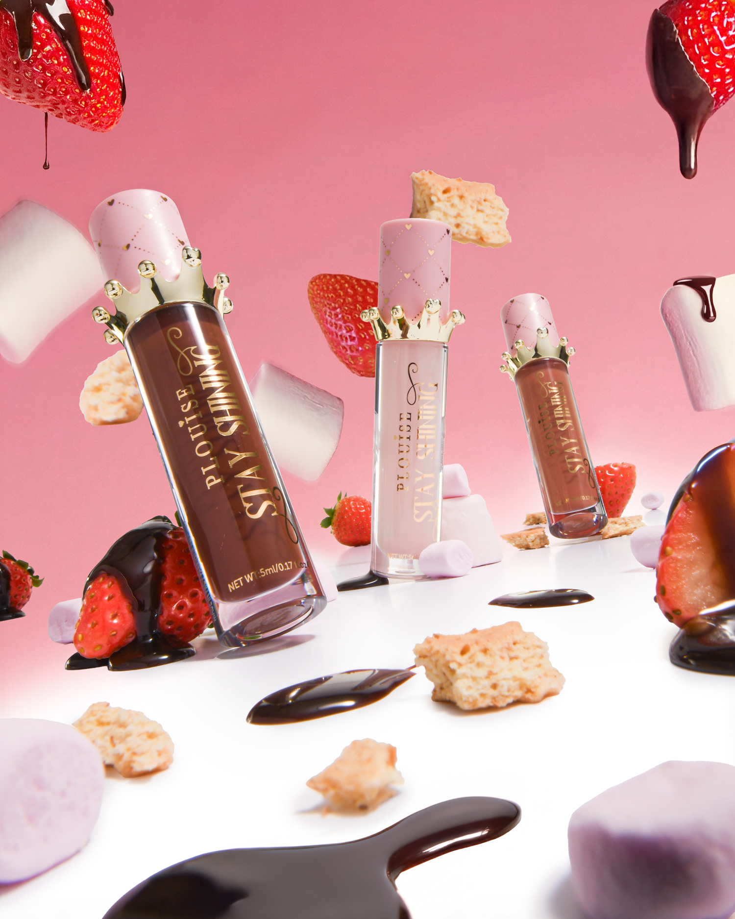 Sweet, shiny and totally addictive. This trio of nude lip oils hydrates, smooths and adds high-shine comfort without stickiness. Featuring the iconic Stay Shining formula you know and love, each shade is finished with a playful dessert-inspired scent for lips that look fuller, glossier and kiss-ready.