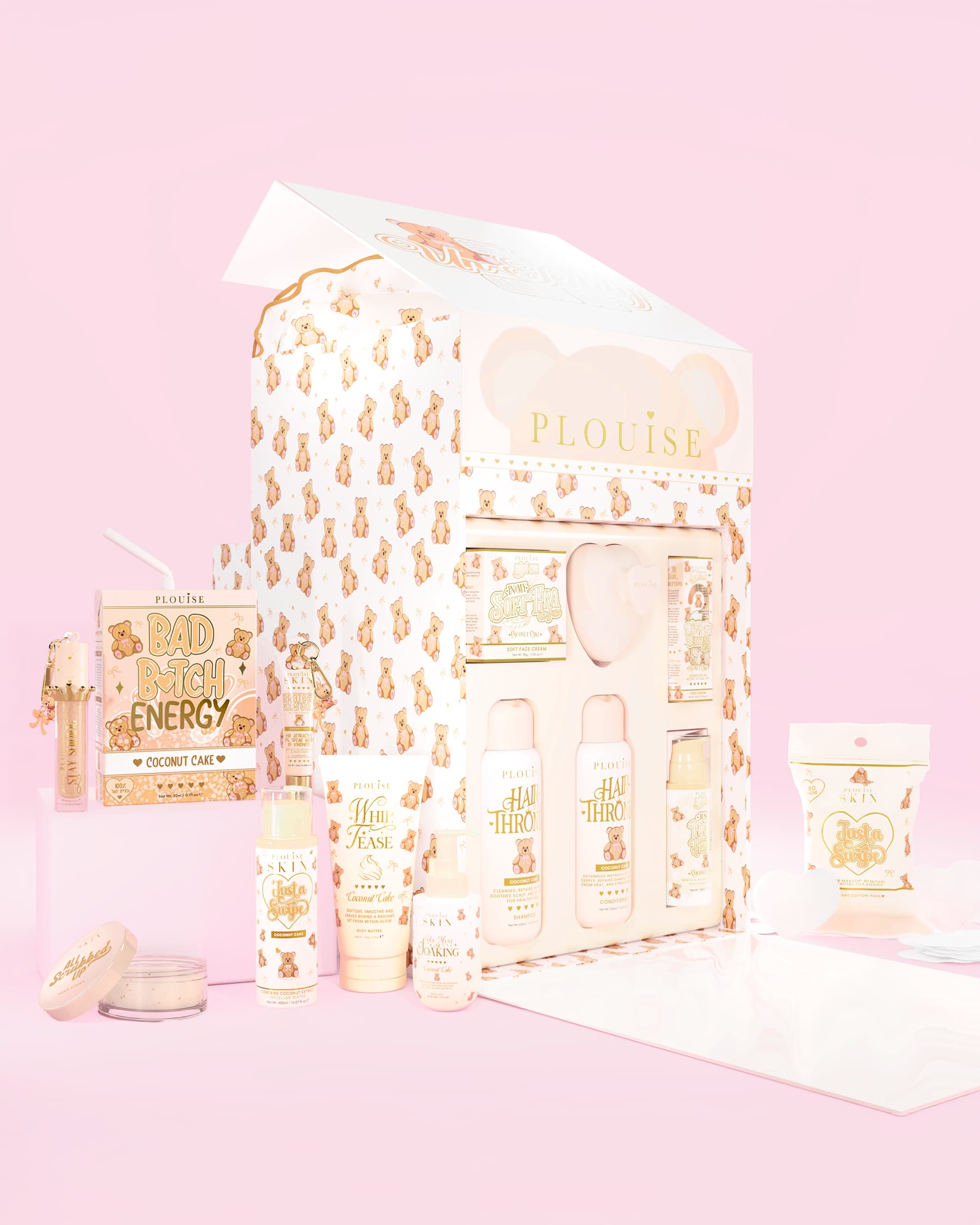 Dieses limitierte Set wurde exklusiv für die Teddy-Kollektion kreiert und enthält Ihre komplette Routine, verpackt in der süßesten Erinnerungs-PR-Box. Von der Reinigung und Feuchtigkeitsversorgung bis hin zur Verwöhnung und dem letzten Schliff duftet jedes Produkt im Inneren nach süßem Kokosnusskuchen, um Ihren Alltag in einen angenehmen Moment zu verwandeln.