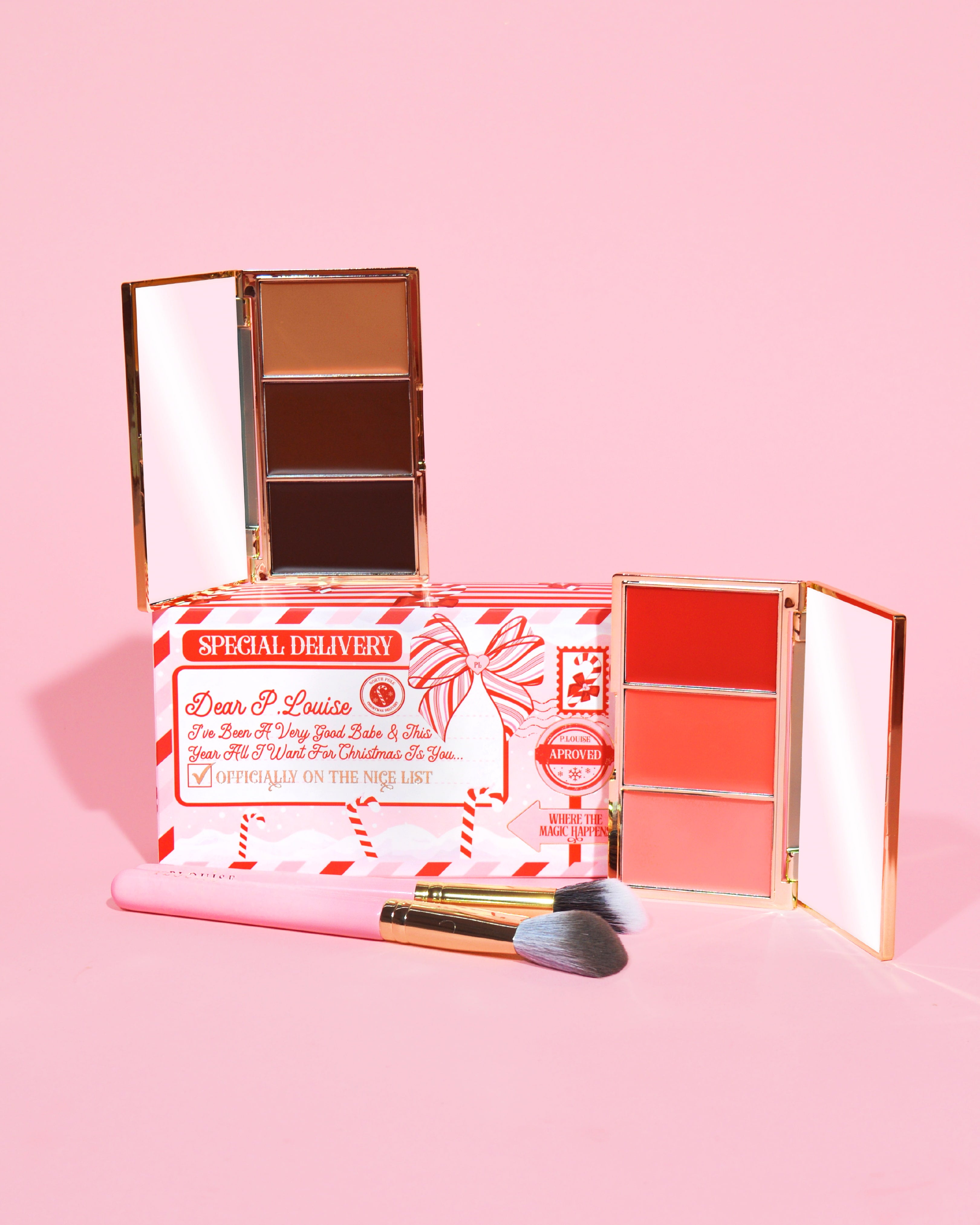 Psst ... Bist du bereit, deinen Urlaubslook zu schläfen? Treffen Brief an den Weihnachtsmann, Das ultimative festliche Schönheitsbündel, das in den süßesten Candy Cane-inspirierten Umschlag eingewickelt ist! Im Inneren finden Sie alles, was Sie brauchen, um die Saison hell zu machen (und Ihre Wangen extra rosig).
