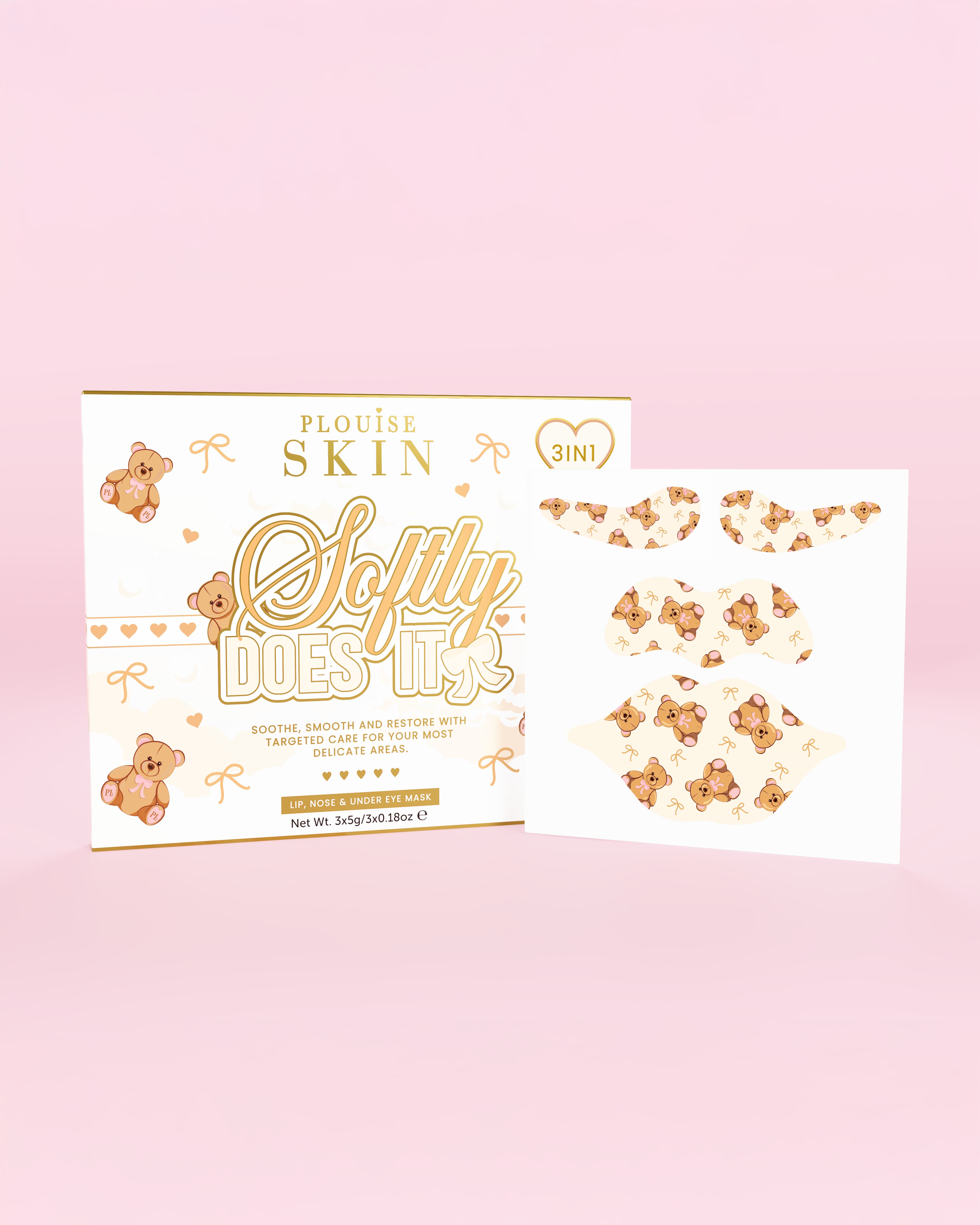 Gönnen Sie Ihrer Haut eine wohlig-süße Wohltat mit dem Softly Does It 3-in-1 Lippen-, Augen- und Nasenmasken-Set, jetzt in einer exklusiven Teddy Collection Coconut Cake Edition.